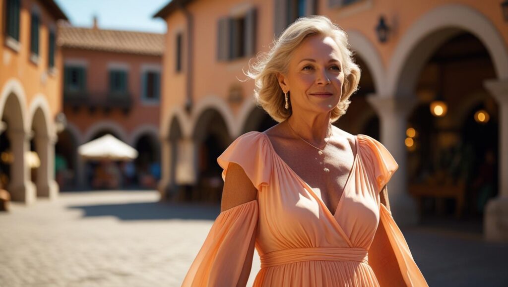 To ráno si oblékla svoje oblíbené broskvové šaty. Staré, ale pořád měkké jako ten nejpříjemnější dotek. A když procházela náměstím, slyšela, jak se dvě dívky za ní šeptem smějí: